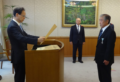 令和5年春の叙勲を受章されました3名の県知事伝達式が、5月24日(水)及び26日(金)に挙行されました。