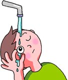 - 必ずやけどした方の目を下にして流水で洗い流す。