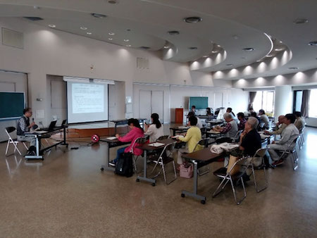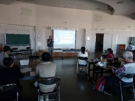別府温泉地球博物館館長(京都大学名誉教授)の由佐悠紀先生よる講演。二酸化炭素泉生成のメカニズム、二酸化炭素泉がある国内の温泉地紹介、別府温泉内での有力地等について資料を交え、分かりやすく説明していただき、参加者の皆さんも調査実施前に二酸化炭素泉に関する知識を深めることができました。