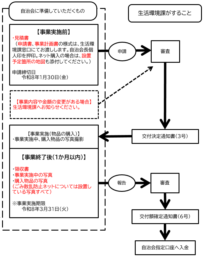 ごみの減量化を図り、ごみの分別意識を高め、美しいまちづくりのため、ごみに関する事業及び活動を行う自治会に対し、補助金を交付します。